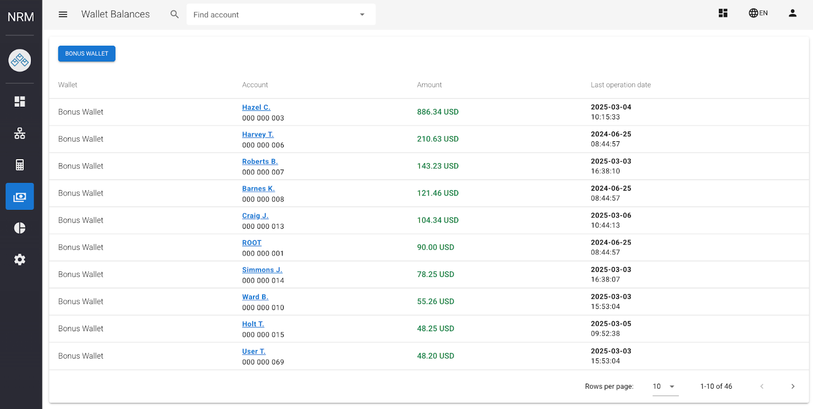 The Wallet Balances page gives users a general view of their wallet balance. It helps to easily track financial data, ensuring transparency and easy access to important information.