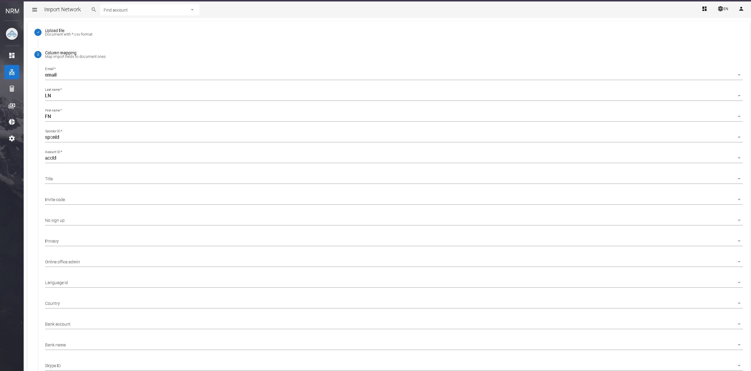 1. Upload file: After entering you Import network tab, you will be brought to this page, select the file you want to upload. Ensure it is in *.csv format.