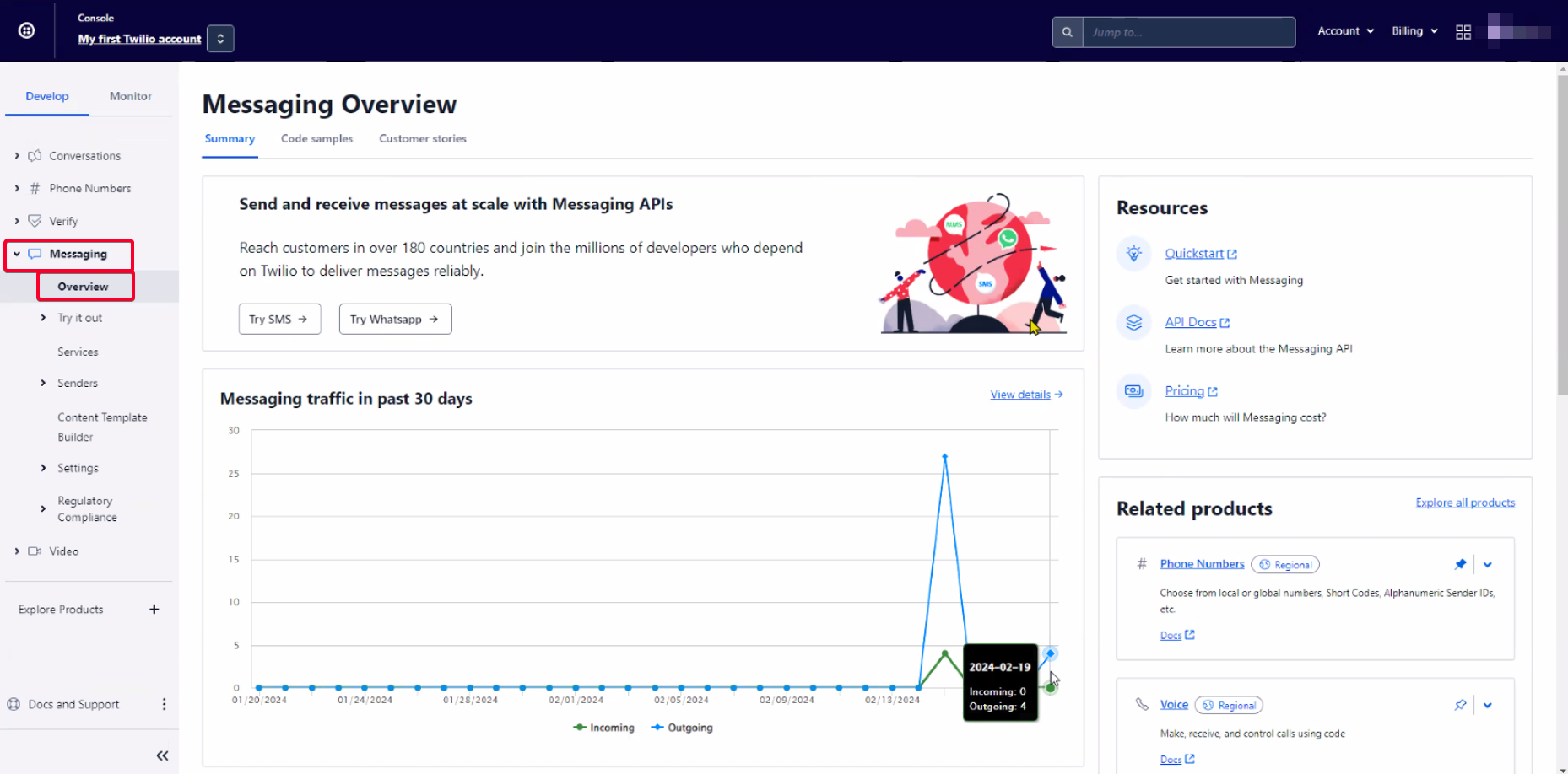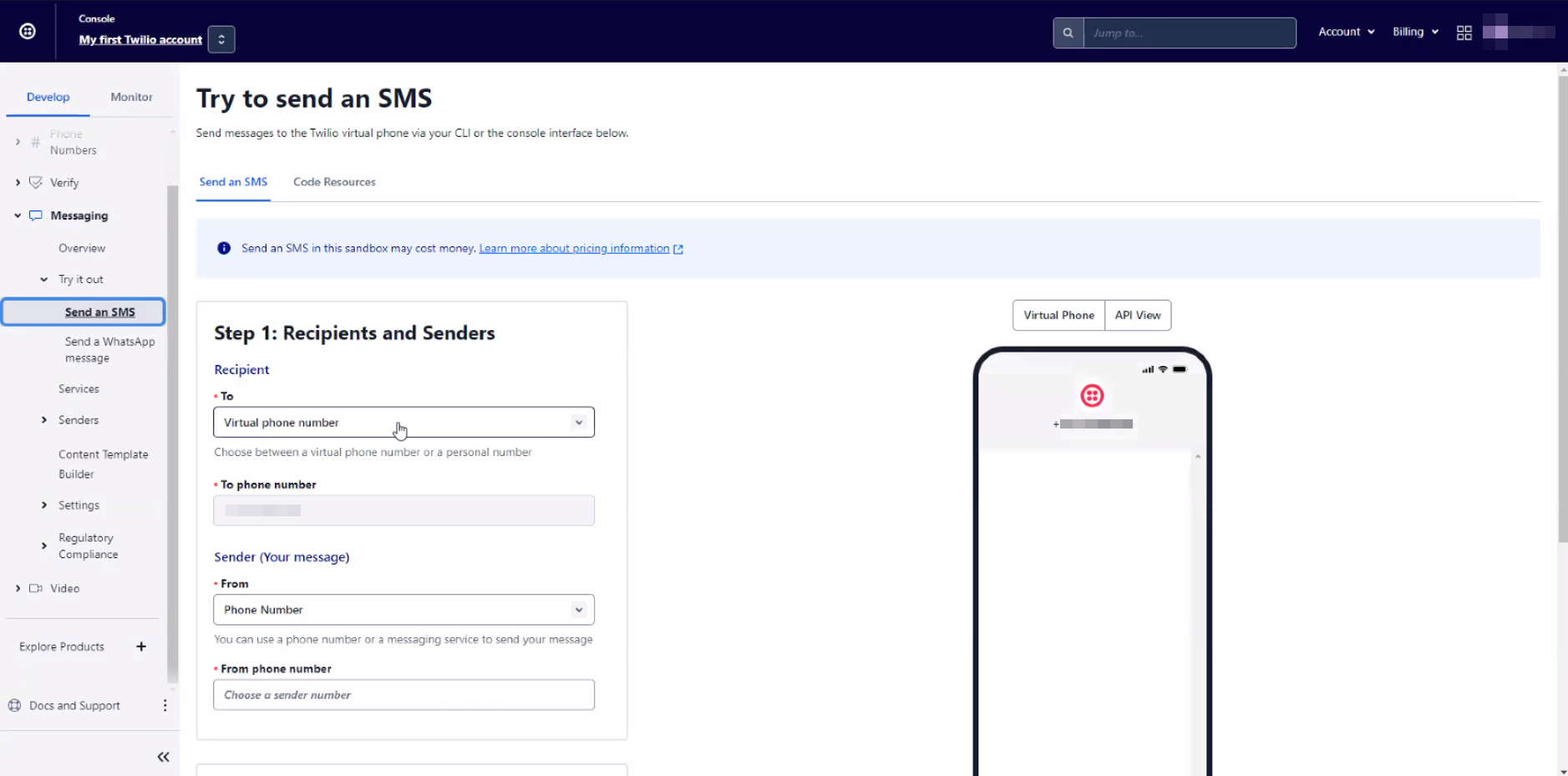 In order to test newly configured setup, please go to Messaging > Try it out > Send an SMS: