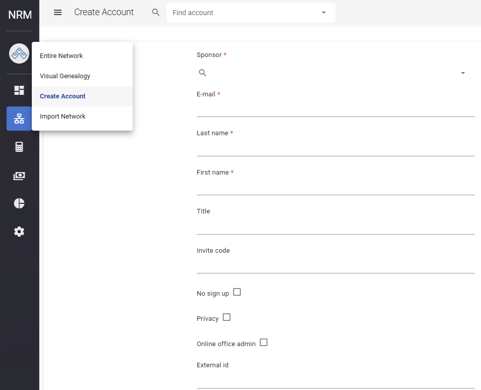 - Open the account creation section in the NRM app.