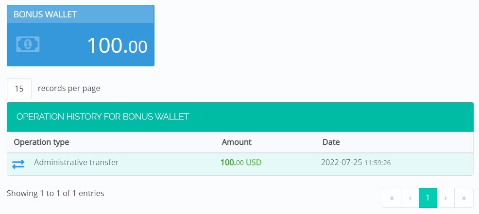 This module is a table that displays all operations for withdrawing funds from the wallet.