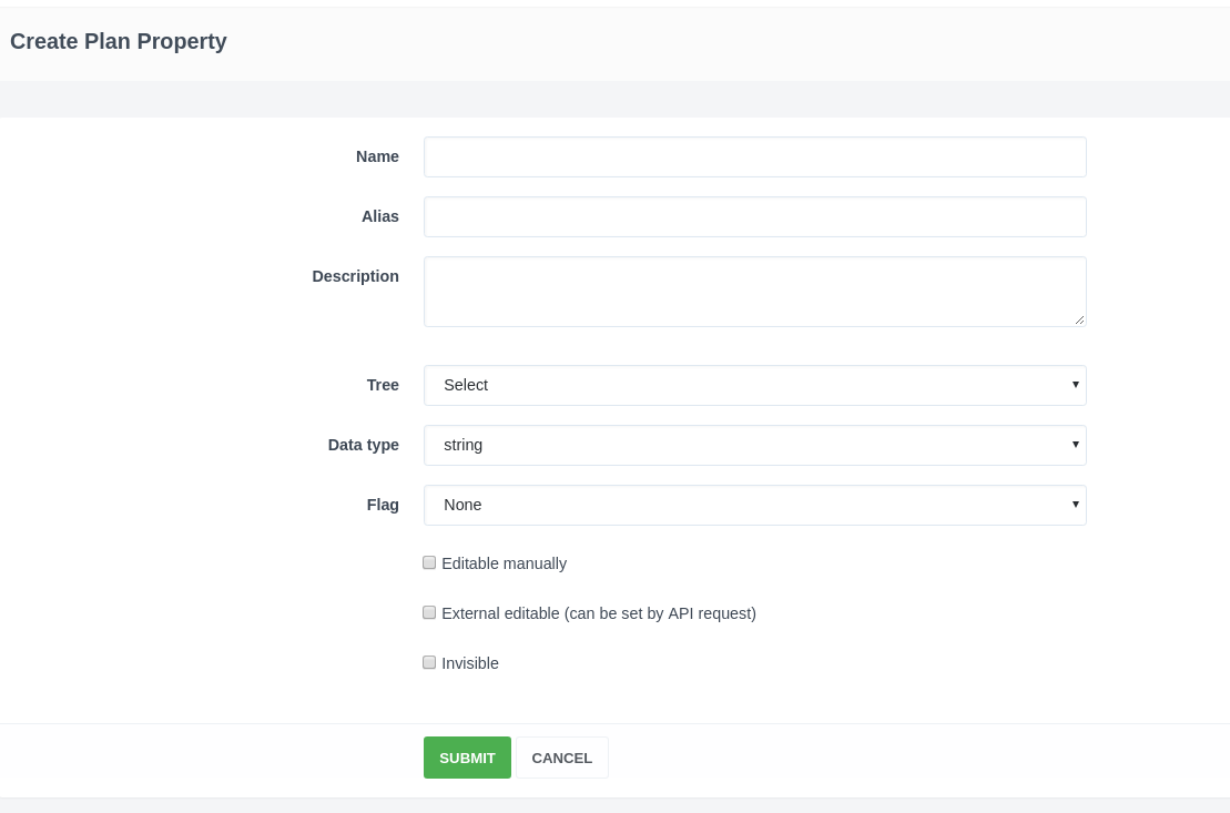 - Tree - select tree, to which the property belongs (trees if there is more than one tree in the application). Add new tree in the "Trees" section.