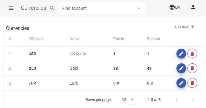The main currency is not available for editing the field to reflect its purchase rate and selling rate, since it is the base currency that the rates of other currencies are considered. Despite this restriction, any currency can be chosen as the main one.