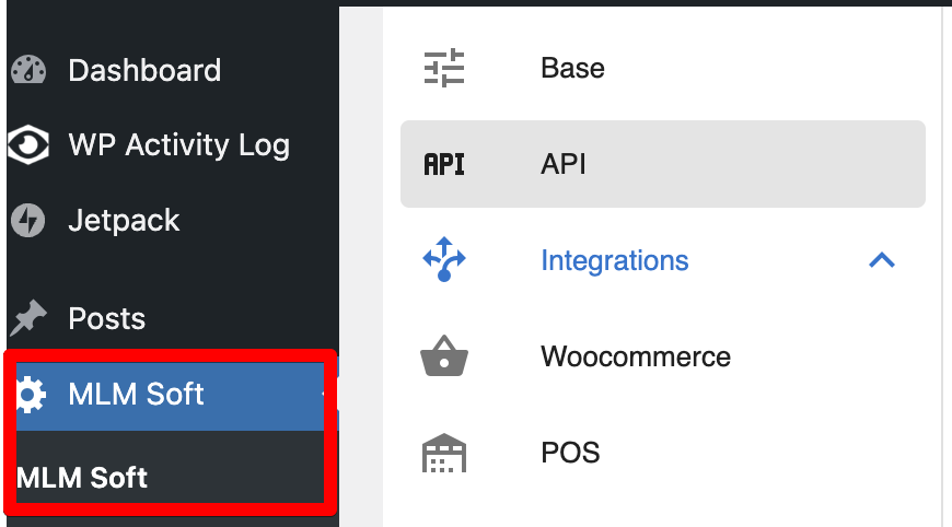 - Login integration: all users login through the MLM Soft platform. If there's no account in the MLM Soft platform, they can't login (except for Wordpress admin users).