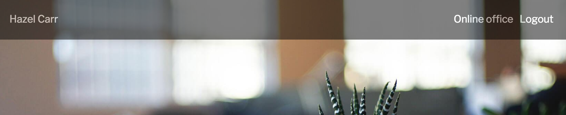 Where Hazel Carr is the name of an authorized user, and Online office is a link to his personal account onlineoffice.pro