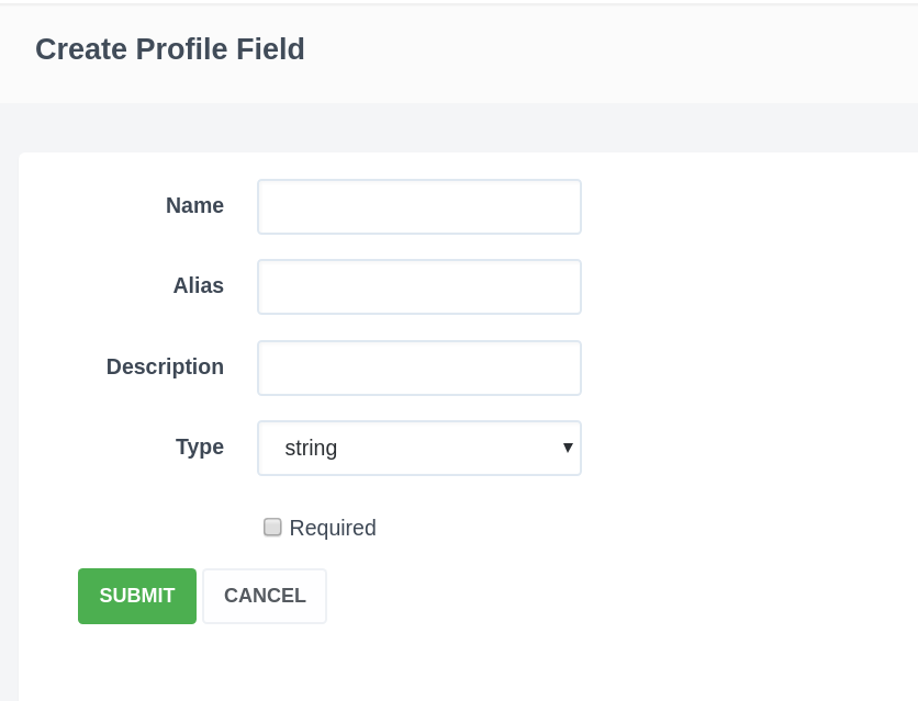 3. Click "Submit" and the new field will appear on the page of the section and in the user profile.