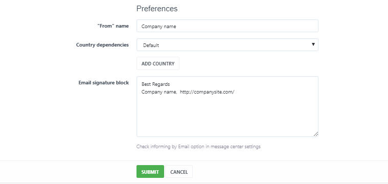 - Select the country in the "Country dependencies" field, use the "Add Country" button or leave "Default";