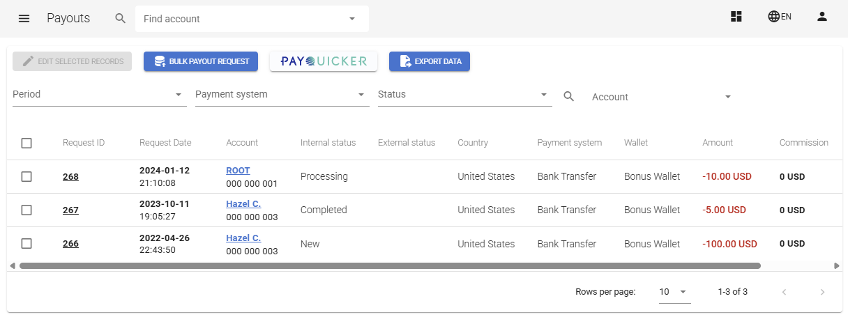 - Account ID – who's requesting a payout