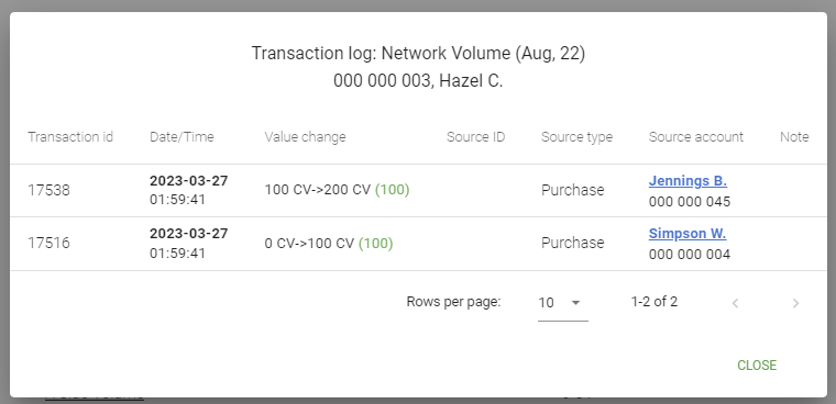 - View Network – Opens entire network page filtered for the current account, showing its downline.