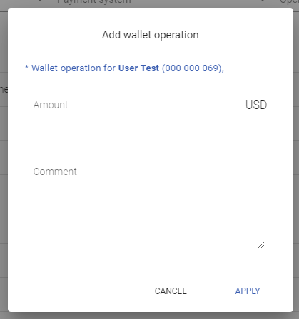 Important: If you enter a minus sign ("-") before the amount, the specified sum will be deducted from the wallet.